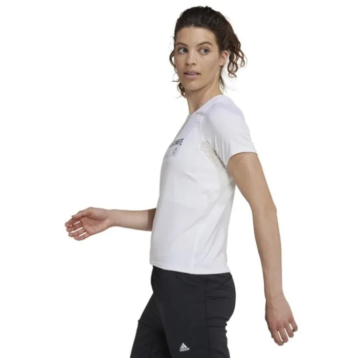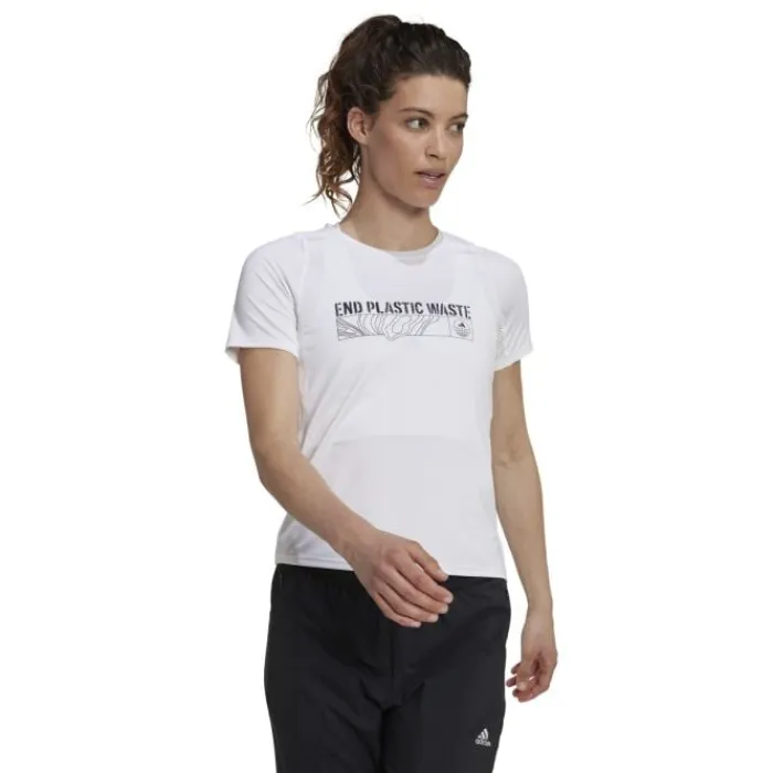 Adidas End Plastic Waste Tee on adidas-juoksupaita. T-paita on valmistettu kierrätetystä polyesterista ja painatus rinnassa. Ympärillä on heijastavia yksityiskohtia, jotta sinut näkyy pimeässä. Lisäksi hihojen alla on verkkomateriaalia, joten voit pysyä viileänä kävelylläsi.