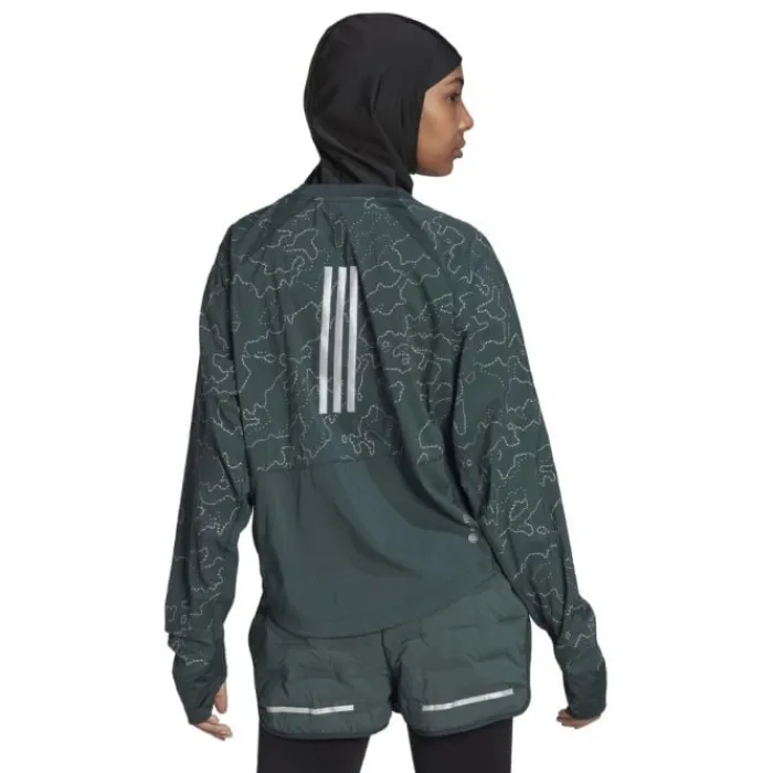 Adidas XCity Cover Up on tuulenpitävä juoksutakki, jossa on collegepaitaa muistuttava leikkaus. Takissa on useita mukavia yksityiskohtia, kuten vetoketjulliset taskut ja sisäinen puhelintasku. Heijastimia on sekä edessä että takana, hihoissa on ikkuna kellolle ja reiät peukaloita varten, jotta hihat pysyvät paikoillaan. Takki on valmistettu kevyestä 100 % kierrätetystä ripstop-nailonmateriaalista, joka kestää hyvin kosteutta ja hikeä. Lisäksi takin voi taittaa omaan taskuun, jos tulee liian kuuma ja haluaa riisua sen.