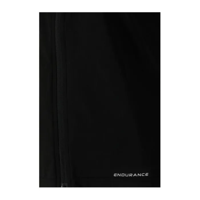 Endurance Belen W Jacket. Elevate your running experience with enhanced safety and comfort. This jacket features reflective details, a chest zipper, and windproof materials to keep you warm and visible.