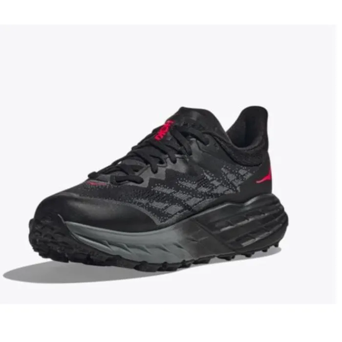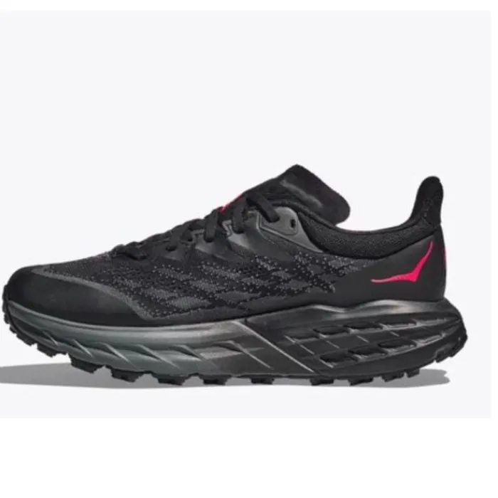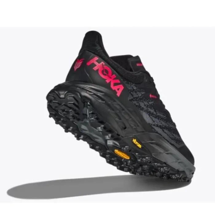 Hoka One One Speedgoat 5 GTX on saanut täydellisen päivityksen Speedgoat 4:stä. Kenkä on muuttunut pohjasta nauhoiksi. Kengät on suunniteltu Hokan lenkkikenkiksi, joilla on eniten pitoa. Saat runsaasti mukavuutta ja pitoa ostaessasi Speedgoat 5:n. Välipohjan muotoilua on muutettu niin, että se on pehmeämpi mutta myös herkkä, joten saat täydellisen sekoituksen näihin ajoihin. Se on edelleen täytetty Hokan tutulla vaahtomuovilla, ja saat tutun neljän mm:n matalan pudotuksen. Päällinen on valmistettu kaksinkertaisesta jacquard-verkkokerroksesta, joka voi laajentua, jos jalkasi nousee juoksun aikana. Tämä on vedenpitävä Gore-Tex-versio.