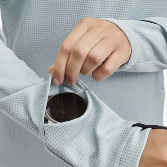 ON Running Climate Shirt on mukava juoksupaita, joka pitää sinut lämpimänä kylminä päivinä. Paita on valmistettu vohvelipolyesterista, joka on 100 % kierrätettyä. Siinä on raglanhihat, jotka mahdollistavat hyvän liikkumisvapauden, ja puoli vetoketjua, jonka avulla voit vetää ylös ja alas sen mukaan, onko sinulla liian kuuma vai kylmä. Hihassa on myös reikä kellollesi ja kuminauhat, jotta paita pysyy paikoillaan käsissäsi.