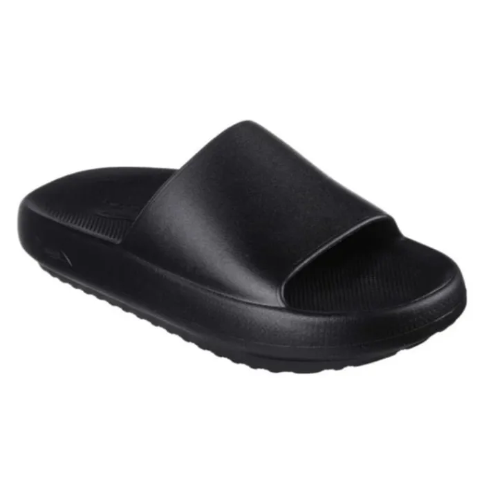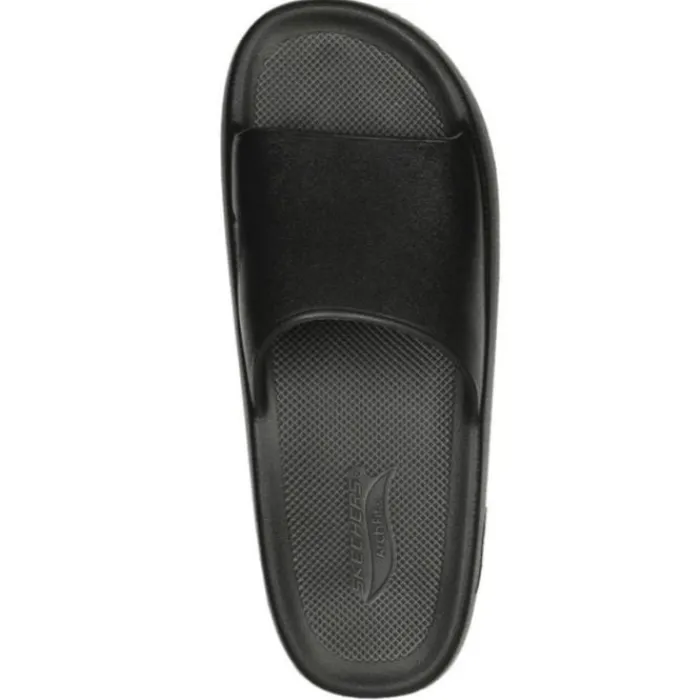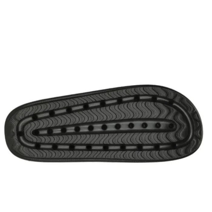 Disse slides er udstyret med en patenteret Skechers Arch Fit® indersål, som har podiatrist-certificeret svangstøtte. Formen er udviklet med over 20 års data og 120.000 ubelastede fodscanninger, hvilket sikrer en optimal pasform og støtte. Sålen er designet til at forme sig efter din fod, reducere stød og fordele vægten jævnt, hvilket forbedrer komforten og reducerer træthed.