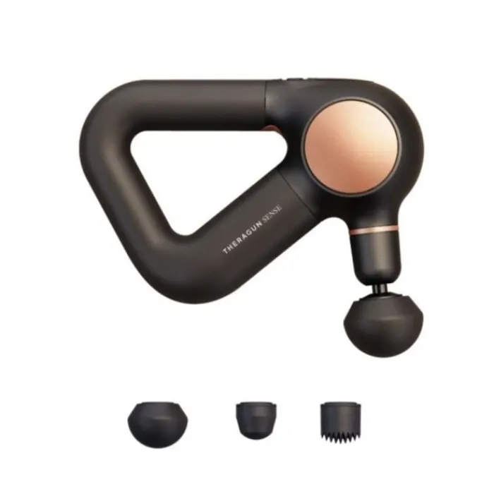 Koe edistynyttä perkussiivista terapiaa Therabody Theragun SENSE:lla. Tämä tyylikäs ja tehokas laite tarjoaa kohdennettua helpotusta kipeille lihaksille ja jännityspisteille, edistäen nopeampaa palautumista ja parantaa suorituskykyä. Sen käyttäjäystävällisen suunnittelun ja säädettävien asetusten ansiosta Theragun SENSE Black on ihanteellinen ratkaisu lievittää lihaskipua ja optimoida hyvinvointirutiinisi. Pakettiin sisältyy 4 erilaista hieronta päätä tähän hierontapistooliin, jota voi käyttää 5 eri nopeudella/voimakkuudella.