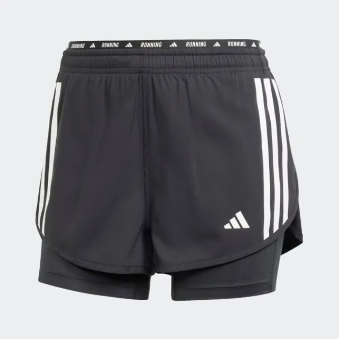 ADIDAS OWN THE RUN 3-STRIPE 2IN1 SHORTS: