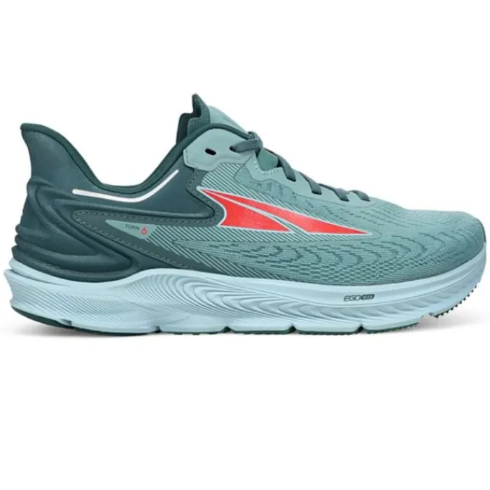 Altra Torin 6 on kevyt volyymiharjoituskenkä niille, jotka haluavat kengän Zero-dropilla. Torin 6 on valmistettu Altran EGOMAX-vaahtomuovista välipohjassa, joka on pehmeä ja herkkä. Kengät ovat kuin kaikki Altran kengät, joiden kantapää on 0 mm ja ne ovat jalan muotoisia. Tämä tarkoittaa, että laskeudut eteenpäin jalkallesi ja sinulla on runsaasti tilaa varpaillesi. Ulkopohja on valmistettu Altran Innerflex-järjestelmästä, joka antaa sinulle pidon ja kestävyyden, mutta samalla hyvän liikkeen jalalle.