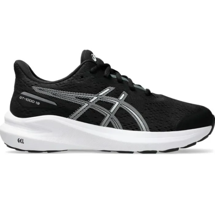 ASICS GT-1000 13 GS (Grade School) on monipuolinen ja vakaa juoksukenkä, joka on suunniteltu erityisesti lapsille. Uusin versio on parantanut pohjan pehmustusta, mikä tekee kengästä mukavamman ja energisemmän. Se on varustettu lapsille suunnitellulla päkiämuotoilulla ja kokotarkistavalla sukkavuorella, jotta se sopisi kasvaville jaloille. Lisäksi siinä on mediaalinen etujalan wrap-up ulkopohja ja varvas kumin ompelu kestävyyden parantamiseksi.