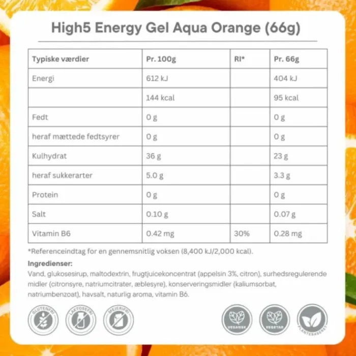 Ainesosaluettelo High5 Energy Gel Aqua – Appelsiini