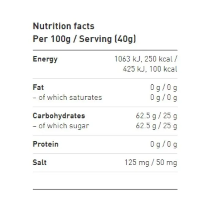– 25 grammaa hiilihydraatteja per geeli