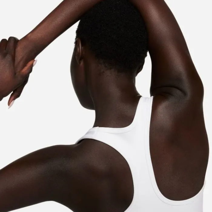 Nike Swoosh Medium Support Bra. Denne sports-bh giver god støtte, ideel til træning og dans, med et tætsiddende hold og svedtransporterende materiale for ultimativ komfort. Den lette, elastiske konstruktion føles som et ekstra hudlag, mens Nike Dri-FIT-teknologien holder dig tør.