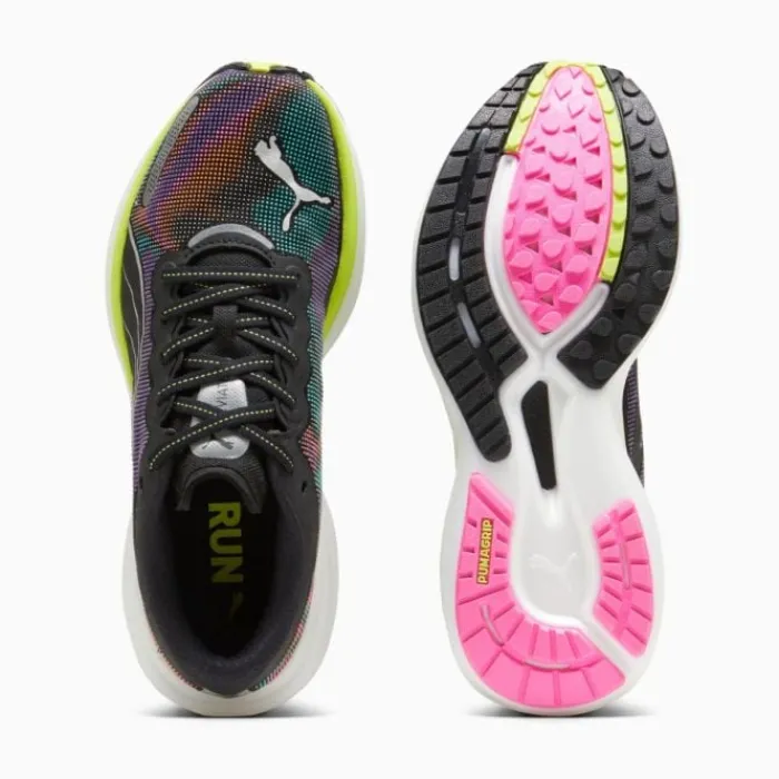Puma Deviate Nitro 2 on erittäin monipuolinen ja nopea harjoituskenkä Pumalta. Siinä on Puman joustava Nitro Elite -vaahto välipohjassa, joka tarjoaa pehmeän ja kimmoisan juoksu kokemuksen, yhdessä tavallisen Nitro-vaahtomaisen kanssa, tekee siitä kestävän ja hauskan kengän. Lisäksi välipohjassa on hiilikuitulevy, joka antaa vielä enemmän joustavuutta samalla kun se antaa kengälle vakautta. Ulkopohja on päällystetty Puma Grip -materiaalilla, joka tarjoaa erinomaisen pidon ja kestävyyden. Päällinen on valmistettu verkosta, joka antaa hengittävyyttä, lisäksi siinä on PWRTAPE, joka varmistaa, että jalkasi pysyy paikallaan ja antaa vakautta.
