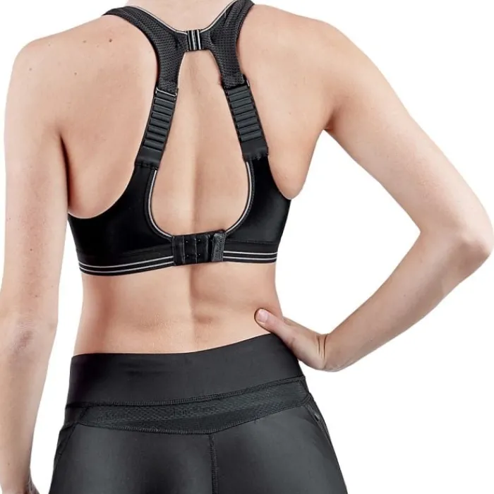 Shock Absorber Dame Ultimate Run Bra har en usædvanlig justerbarhed i ryggen, og netop hægtelukingen øverst er hemmeligheden til, at denne BH har en ekstrem støtte. Den gør at stropperne ikke sidder ovenpå eller tæt ved skulderbladene, og BH’en vrider sig derfor ikke, når du løber. Stropperne er vatteret, så de ikke generer, når du svender. En god sports BH skal sidde stramt, og denne BH føles derfor anderledes, når den kommer på. Men fortvivl ikke – når du har løbet med denne BH én gang, vil du ikke fortryde.